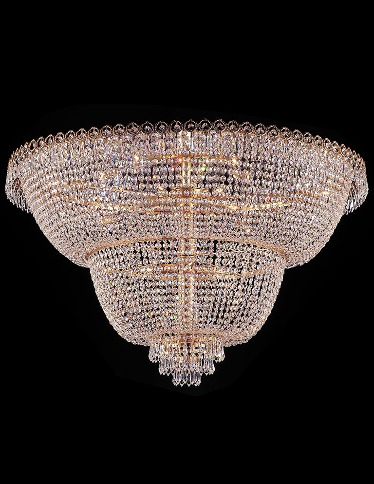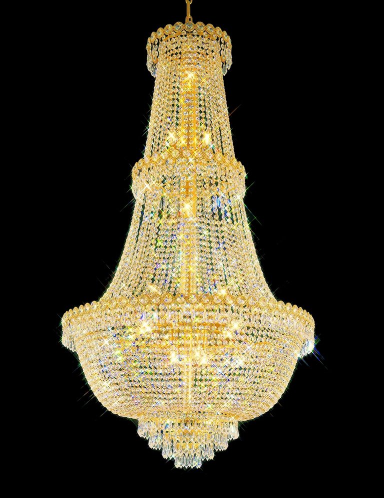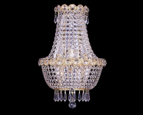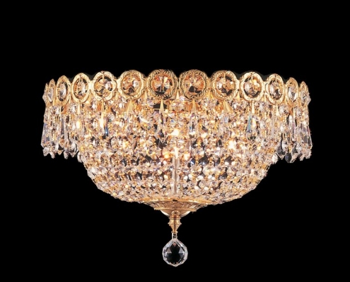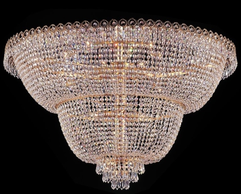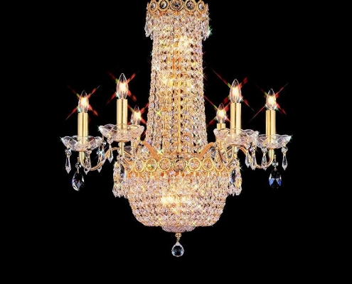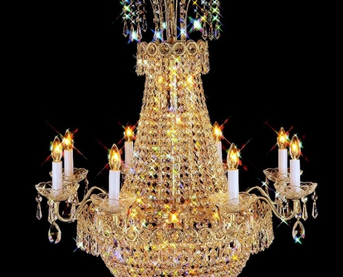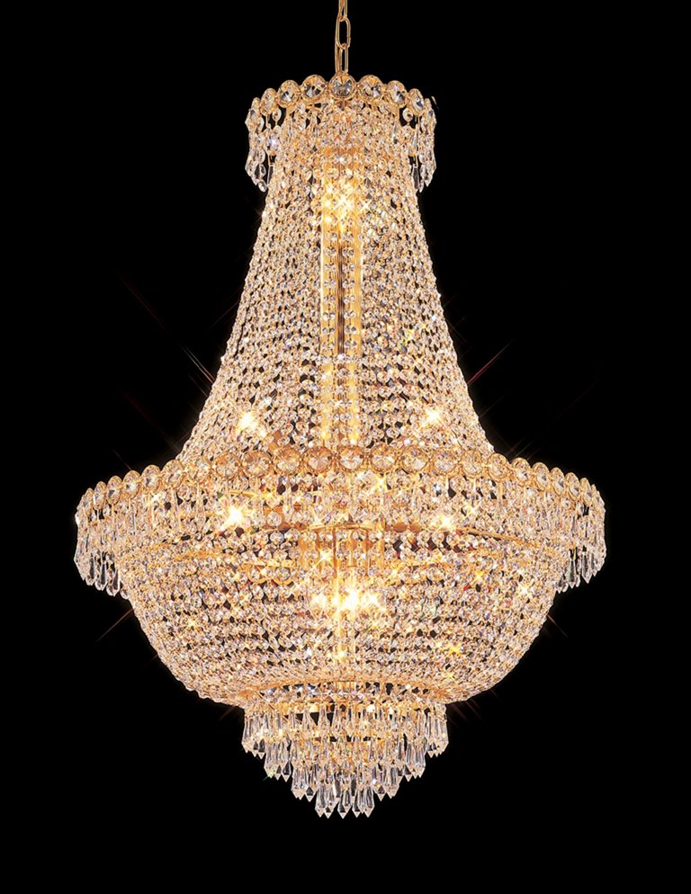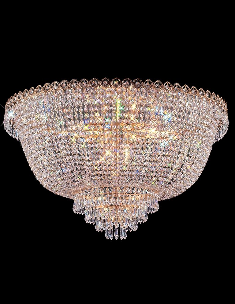 Ashonte’s simple, draping crystal culminates in a natural, full basket that can grace any décor. At any size, the chandelier dominates a room, making its presence felt just as well as any Emperor. The simple coronets of gold-encased crystal circles reinforce this radiating beauty and its style fit for an empire.