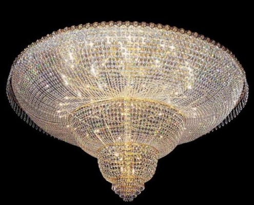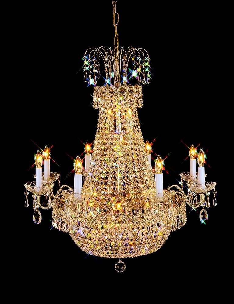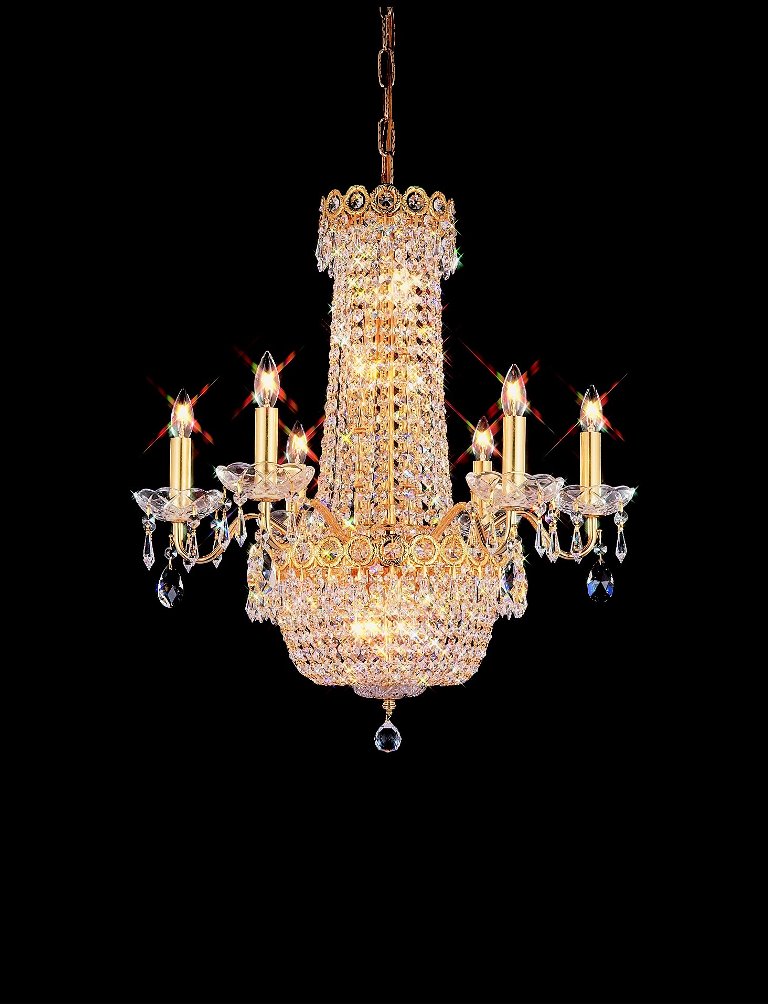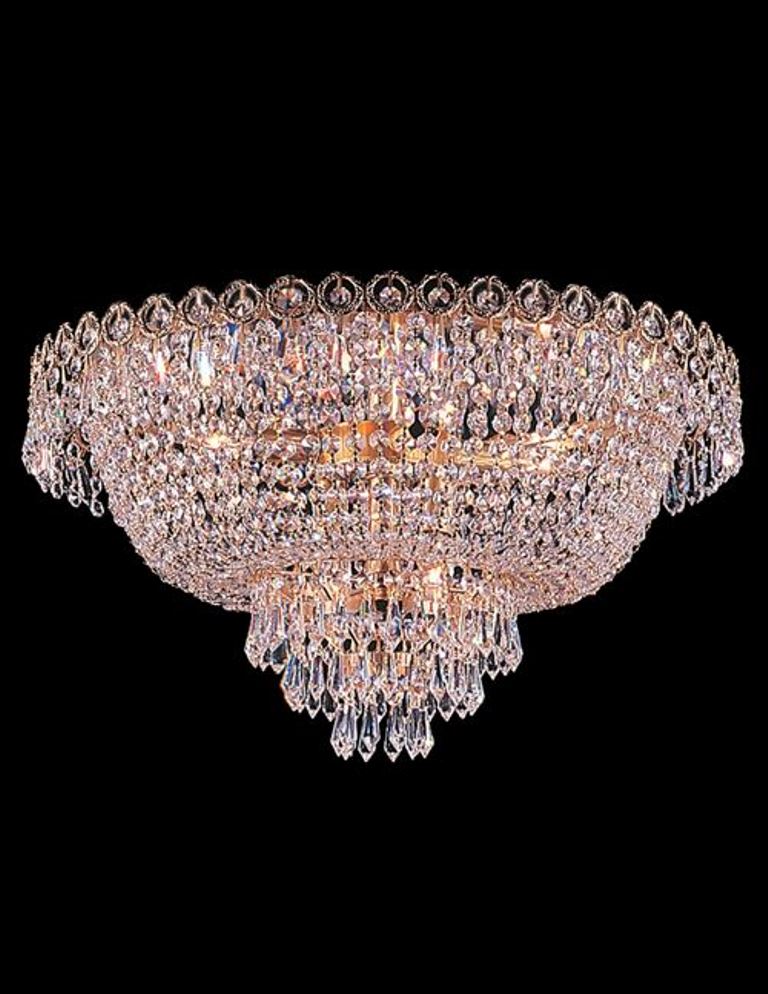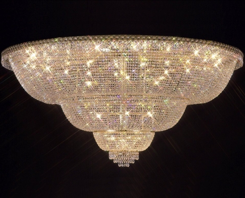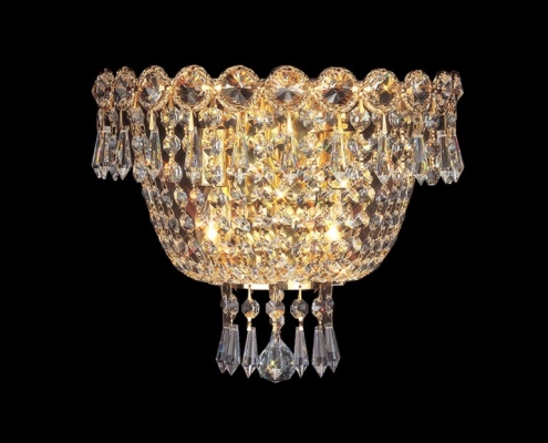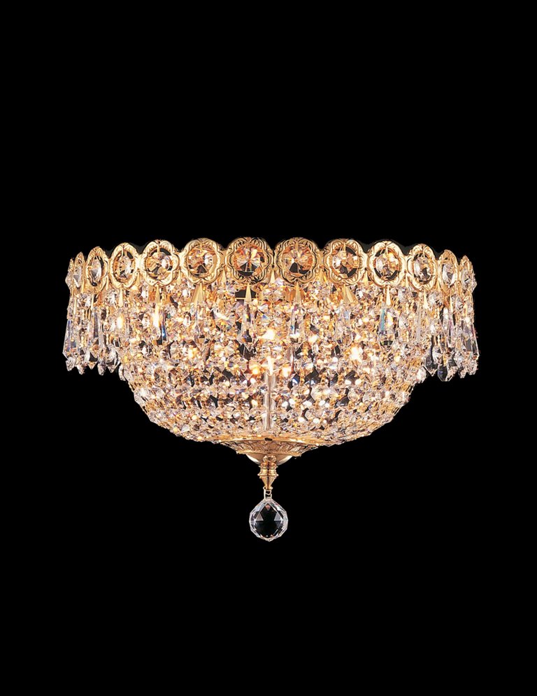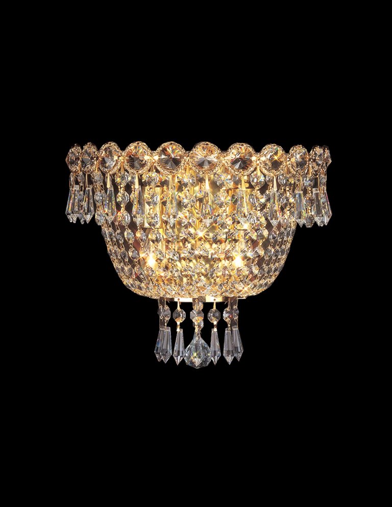 Ashonte’s simple, draping crystal culminates in a natural, full basket that can grace any décor. At any size, the chandelier dominates a room, making its presence felt just as well as any Emperor. The simple coronets of gold-encased crystal circles reinforce this radiating beauty and its style fit for an empire.
