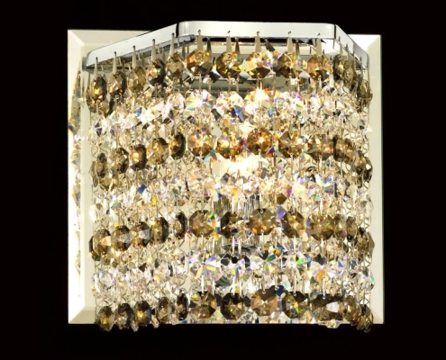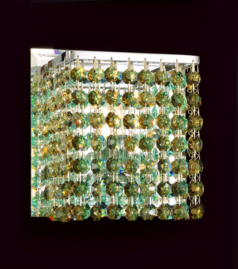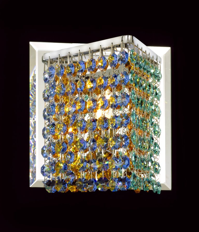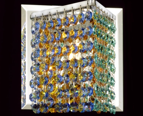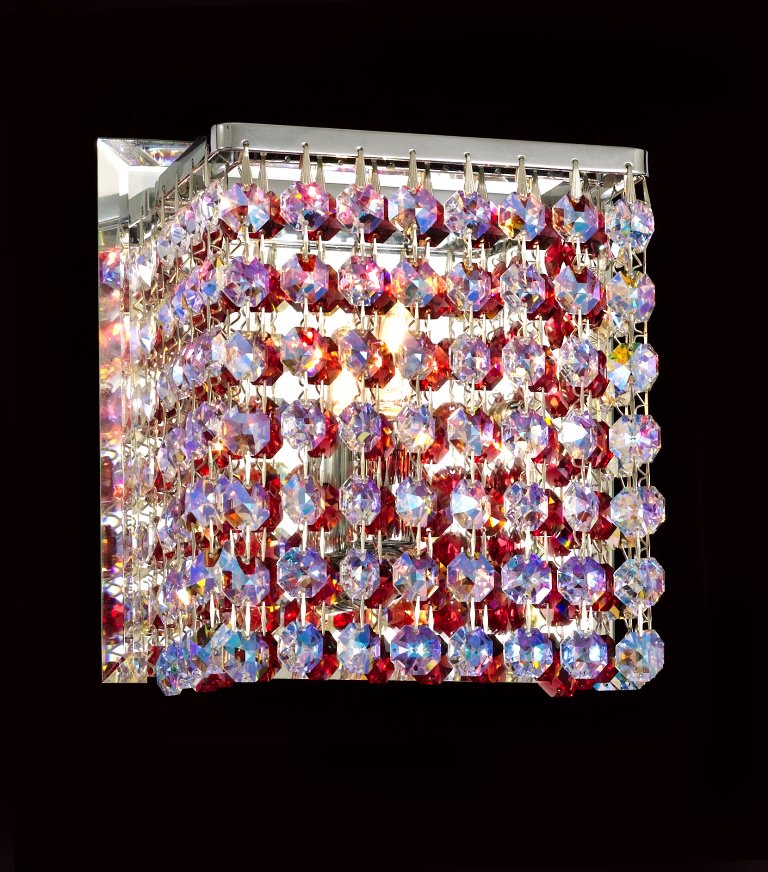 Pecaso sparkling pendants and wall scones complement and enhance any interior design. Their silver-finished frame dressed in a myriad of clear or coloured crystals injects a heightened sense of drama to any room. Their brilliance not only illuminates but radiates a glow that pleases and warms the heart. Pecaso’s clear or coloured hexagon Cubix™ wall scones is part of the Cubix™ series from Pecaso Group. Cubix™ is a series of mini-pendants and scones with breathtaking brilliance and fun geometric shapes. These beautiful pendants are perfect for every room in your home, kitchen island, entertainment room, bathroom and more. Cubix™ offers a fresh approach to the use of clear or colour crystal.