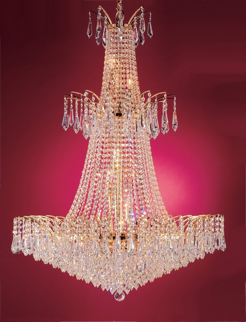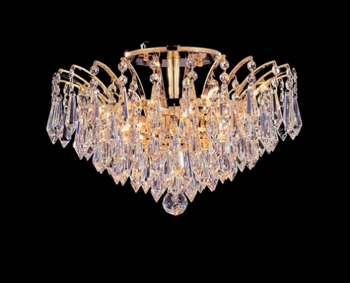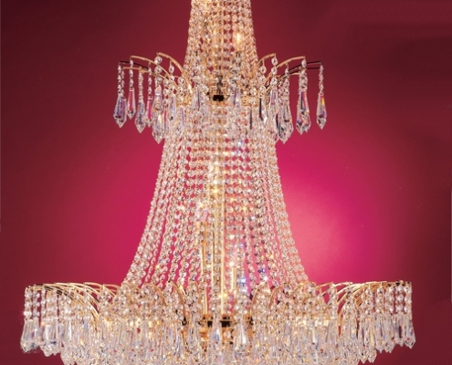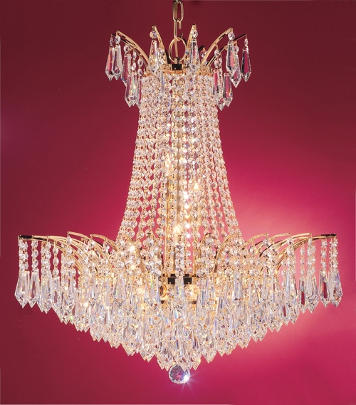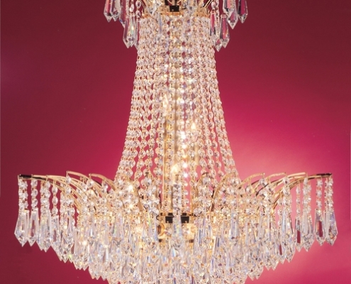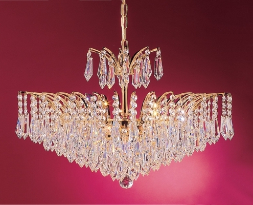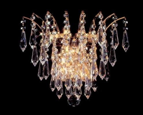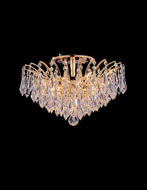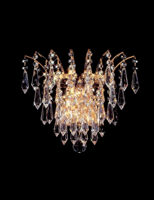 Imagine a fountain of fiery crystals exploding upward from a golden center. This describes the exciting shape of the Flamingo Series. This style is streamlined to complement the most modern of interiors: yet it still conveys a sense of proportion and balance that exemplifies its traditional heritage. What one sees first is this dramatic outline bursting with crystal light. It makes a statement with either a neo-classical chair or an abstract painting. It is this perfect marriage of classical good looks with contemporary styling that makes it a design dynamic in any decorating scheme.