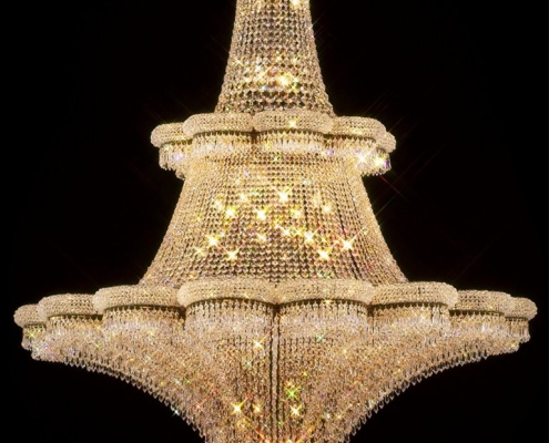 La Rioja is the smallest region of mainland Spain, bordered by Navarre, Castile Leon and Aragon. In Rioja, here are groups of monasteries that are not only highly artistic but of significant cultural importance. From the air, La Rioja looks like a large bowl, a depression surrounded by mountains. Our La Rioja Chandelier is elegance beyond description. A cascading mass of crystal chains, gently rounded borders of crystal and Solid masses of crystal swirl. Created with the finest crystal in the world. A spectrum of colors shines through extraordinary Crystal.