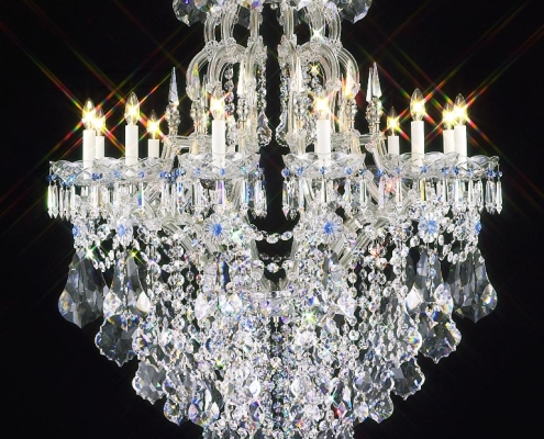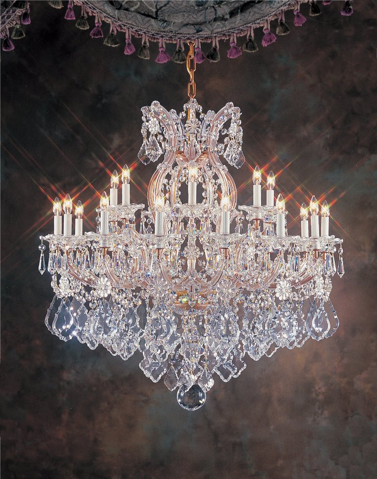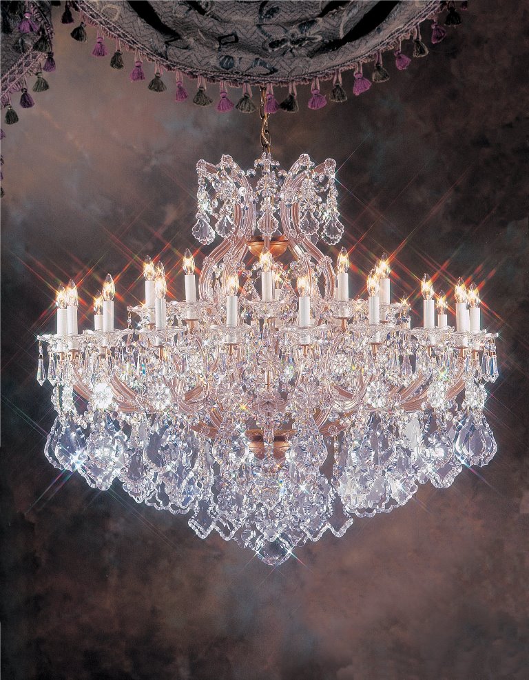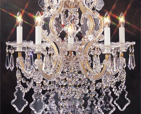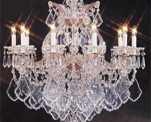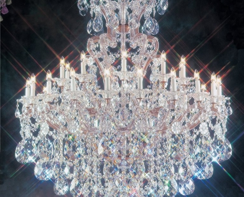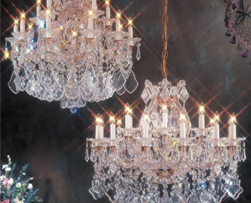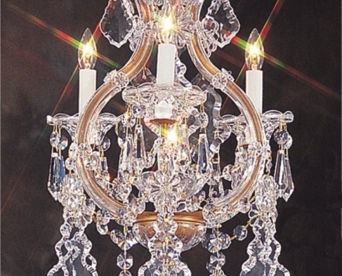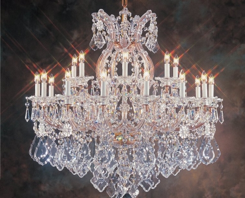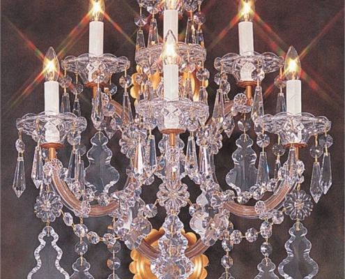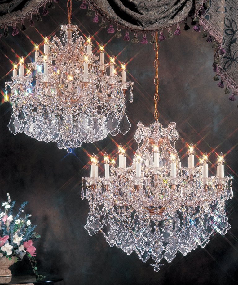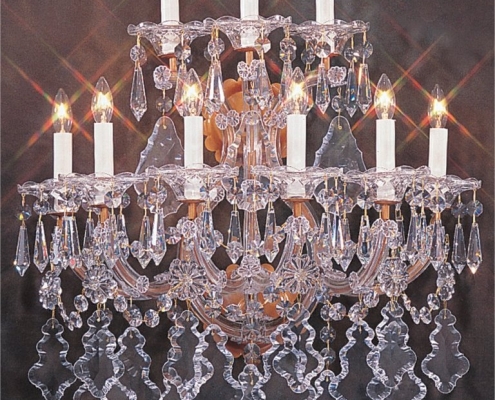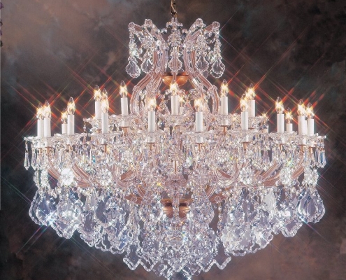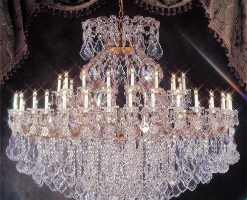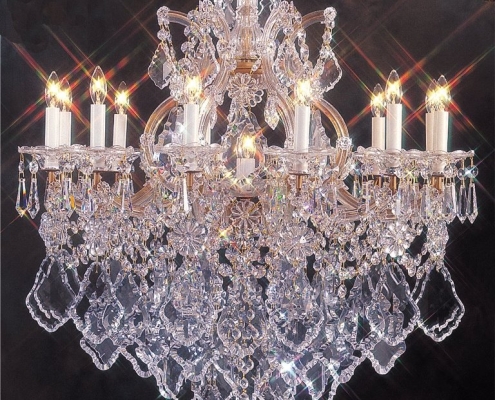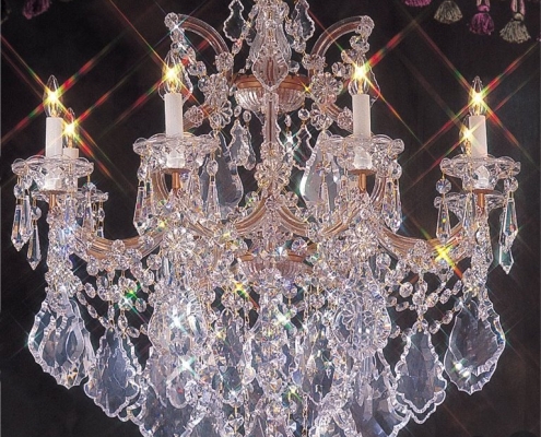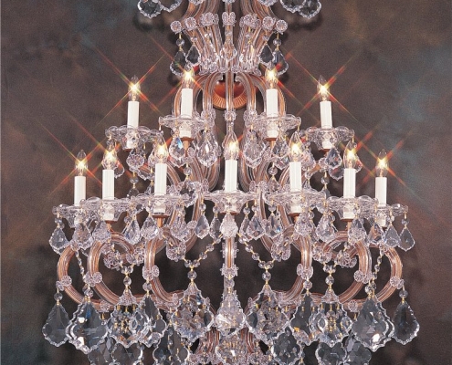 In 1746, Empress Maria Teresa ordered a chandelier to be made for her Schönbrunn palace. When it arrived she became so thoroughly enchanted with its lyre shape and sparkling rosette bobeches that she ordered other rooms filled with will similar, magnificent pieces. It was a style of chandelier that came to be associated with her name, as did the yellow ochre paint on the façade of the palace.