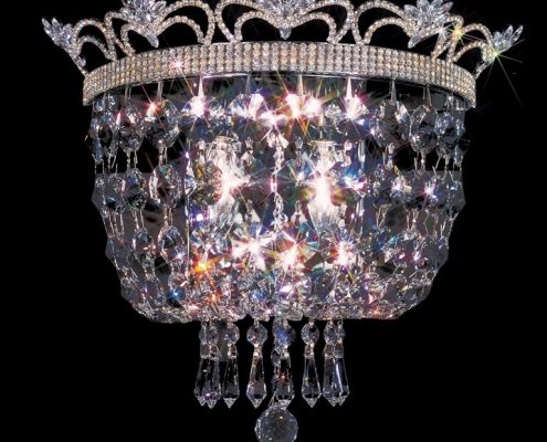 Principessa – Who could have imagined such beauty? On the edge of a fairy tale, just short of your perfect dream, the principessa captures all that’s best and beautiful in a crystal chandelier. In an intimate setting, in a grand scheme, the Principessa shows a true sense of class. Principessa trains of luminous crystal are topped by exquisite tiaras that mark her royal presence. Any room will be enriched by Principessa beauty.