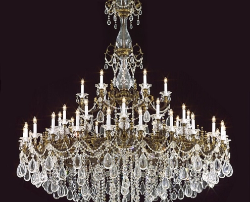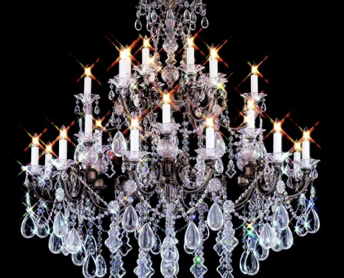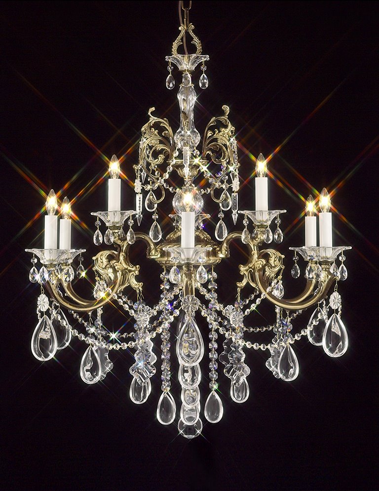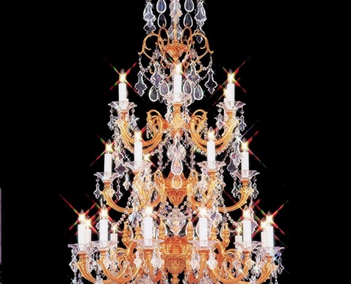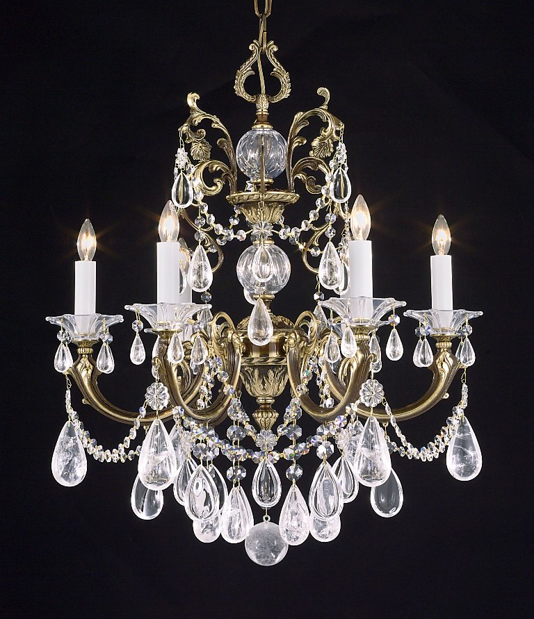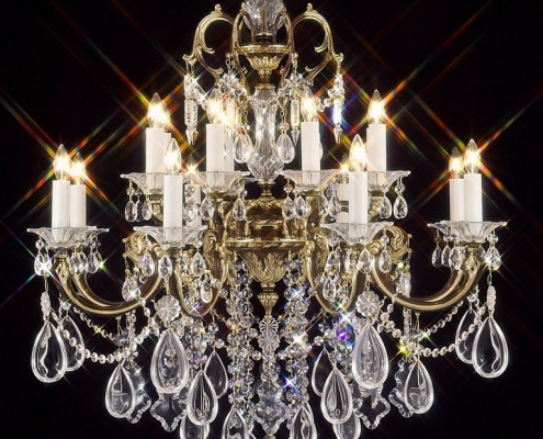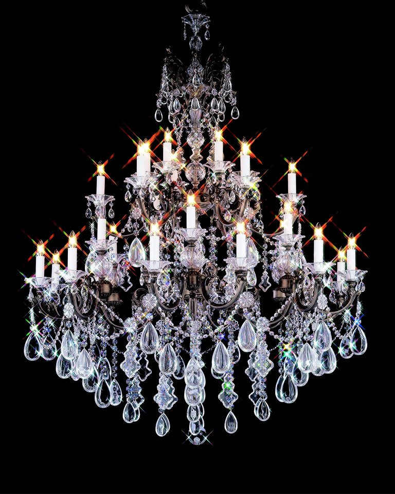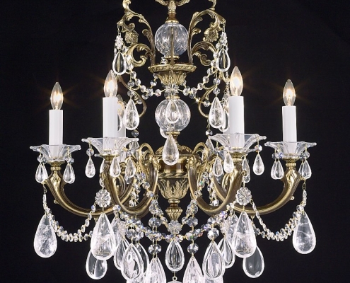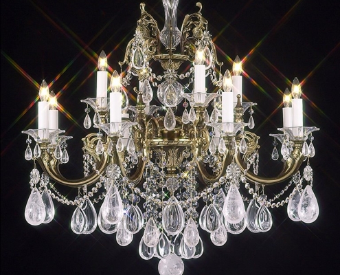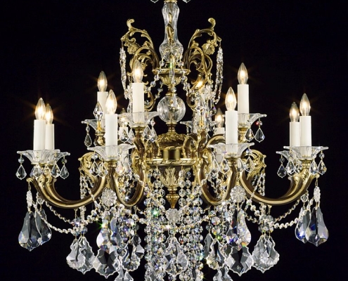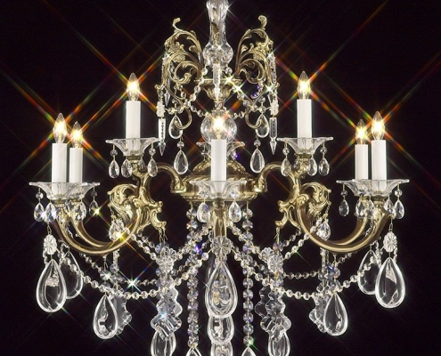 The seventeenth century saw the growth of opulence in the styling of crystal chandeliers. Promoted by the monarchies of Western Europe, the open frame with heavy arms and sumptuous crystal displays became the norm of the aristocracy. The richer the display, the greater power and authority they conveyed of their owner. Lush, intricate, crystal trimmings adorn each of our Romanza chandeliers. Refined rosettes laden with a multitude of pendaloques and drops perfectly compliment the cast leaf frame motif. Like a decadent confection of light and crystal, the Romanza collection will satisfy even the most discerning gourmand.